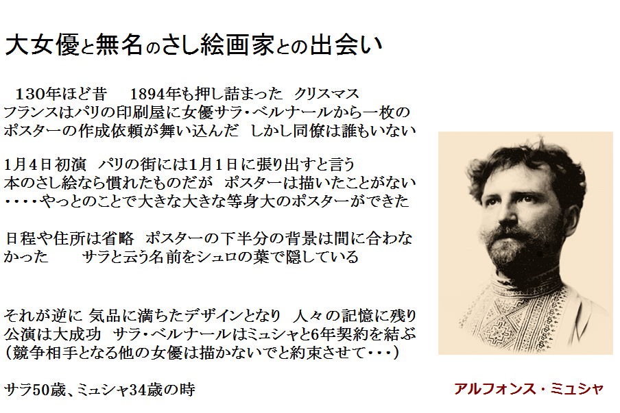 フランスはパリの印刷屋に女優サラ・ベルナールから一枚のポスターの作成依頼が舞い込んだ しかし祭日休業なので同僚は誰もいない
